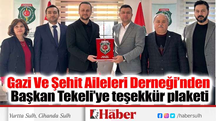 Gazi Ve Şehit Aileleri Derneği’nden Başkan Tekeli’ye teşekkür plaketi