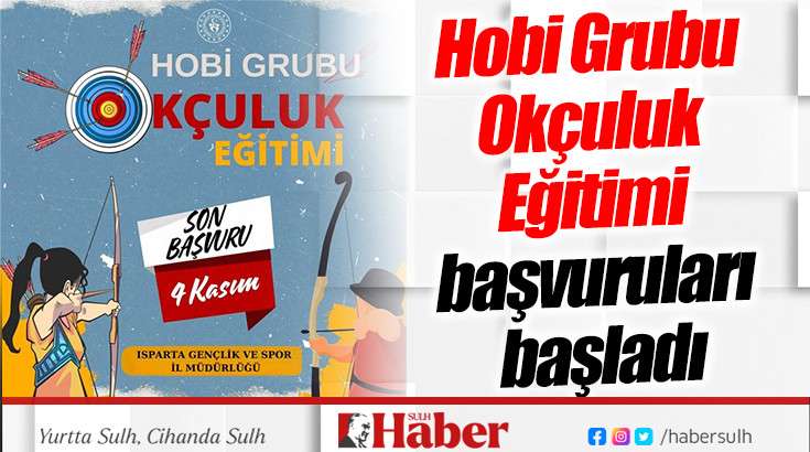 Isparta Gençlik ve Spor İl Müdürlüğü, Atatürk Stadyumu Okçuluk Salonu'nda hobi grubu (yeni başlayanlar için) 9 – 18 yaş okçuluk eğitimleri başlıyor. Bu kapsamda kayıtlar e-devlet portalı, spor bilgi sistemi üzerinden Ulusal Spor Projeleri, GSB Spor Okulları sekmesinden gerçekleştirilecektir.