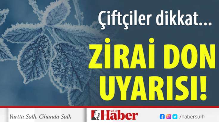 Meteoroloji'den yapılan son değerlendirmelere göre; (22.03.2025) bu gece saatlerinden itibaren beklenen zirai don hadisesinin Pazar ve Pazartesi günleri gece ve sabah saatlerinde hafif, yer yer orta kuvvette olacağı tahmin ediliyor.