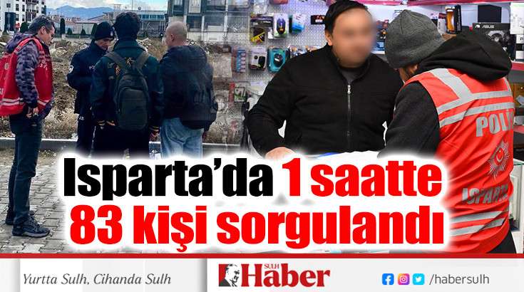 Isparta İl Emniyet Müdürlüğü ekipleri, 1 saate 83 kişiyi sorguladı.
