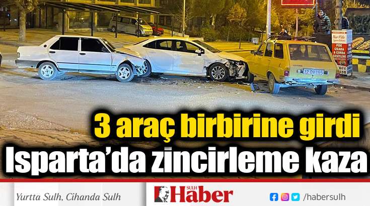 Isparta’da 3 otomobilin çarpıştığı zincirleme kazada şans eseri yaralanan olmadı.