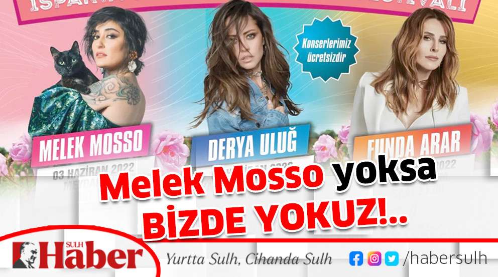 “Yıl 2022… Isparta Belediyesi, ‘ahlaki değerler’ gerekçesiyle Melek Mosso’nun ‘Uluslararası Gül Festivali’ndeki konserini iptal etti. Festivalin diğer şarkıcıları Derya Uluğ ve Funda Arar ‘O zaman biz de yokuz’ dedi.”