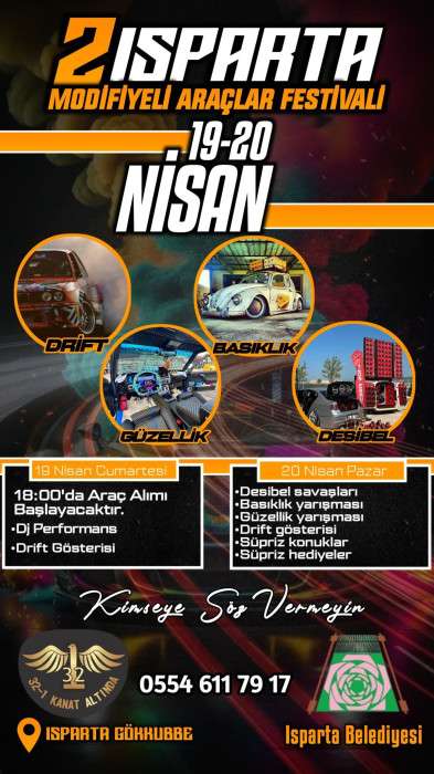 Isparta, bu kez motor sesleriyle bir yardım kampanyasına ses veriyor. Henüz 16 yaşında olan DMD kas hastası Görkem Efe Şengün için, Türkiye’nin dört bir yanından gelen modifiye araç tutkunları, Gökkubbe Fuar ve Kongre Merkezi’nde düzenlenecek olan 2. Isparta Modifiyeli Araçlar Festivali’nde bir araya geliyor. Festival, 19-20 Nisan tarihlerinde Isparta Belediyesi’nin himayelerinde gerçekleşecek.