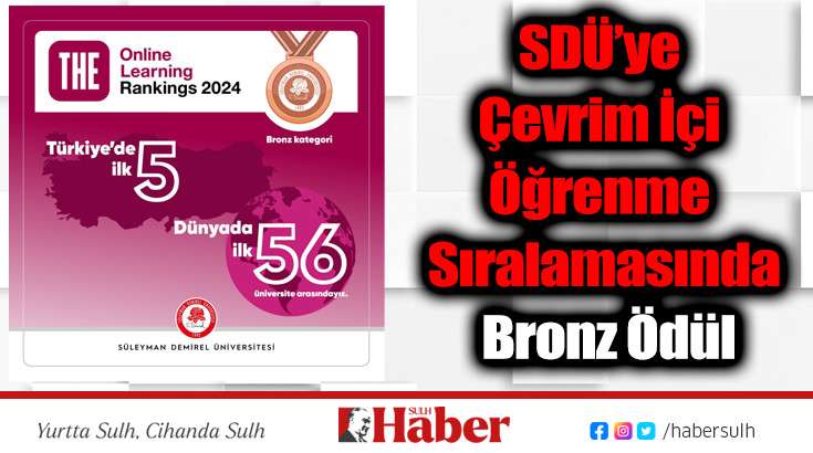 Süleyman Demirel Üniversitesi, Times Higher Education (THE) tarafından bu yıl ilk kez gerçekleştirilen "Çevrim İçi Öğrenme Sıralaması"nda (THE Online Learning Rankings) bronz ödüle layık görüldü. Dünya genelinde 56 üniversitenin yer aldığı sıralamaya Türkiye’den yalnızca 5 üniversite girmeyi başardı. THE’nin 2024 yılı için çevrim içi öğrenmeyi küresel bazda ölçmek amacıyla yaptığı sıralamada, çevrim içi öğrenmeyi destekleyen ve içeriği en az yüzde 40 oranında çevrim içi platformlar tarafından sunulan üniversiteler değerlendirildi. Sıralama, SDÜ öğrencilerinin görüşleri ile birlikte toplamda 17 metriğe dayanarak dört ana başlık altında yapıldı: “Kaynaklar” (çevrim içi öğrenmeye ayrılan kaynakların seviyesi), “Katılım” (çevrim içi öğrenmedeki öğrenci katılımı), “Sonuçlar” (çevrim içi öğrenme ile elde edilen sonuçlar) ve “Ortam” (çevrim içi öğrenmenin gerçekleştiği ortam).