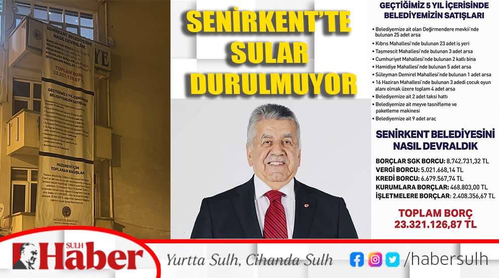 31 Mart 2024 Mahalli İdareler seçimlerinde 2009-2014 yılları arasında Senirkent Belediye Başkanlığı yapan Hüseyin Baykal tekrar Belediye Başkanı seçildi. Baykal mazbatasını alıp görevine başladı ancak Senirkent’te sular durulmuyor. MHP’li Belediye Başkanı Hüseyin Baykal belediye borçlarını pankart yapıp belediye binasına asınca siyasi atmosfer tekrar hareketlendi.