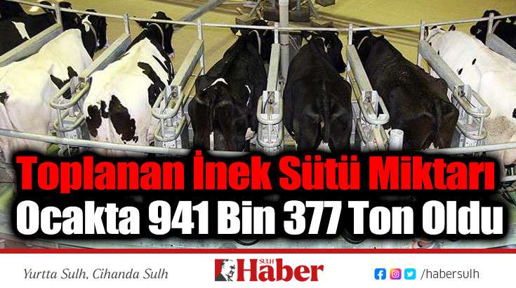 Türkiye genelinde toplanan inek sütü miktarı, ocakta geçen yılın aynı ayına göre yüzde 2,3 artışla 941 bin 377 tona çıktı.