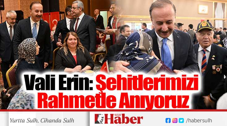 Vali Erin, programda bulunan şehit ailelerine ve gazilere teşekkür ederek, “Aziz şehitlerimizin aziz hatıraları önünde bir kez daha saygıyla eğiliyor, onların şefaatlerine nail olmayı Cenab-ı Allah’tan diliyorum. Ne mutlu şehitlerimize, ne mutlu onların ailelerine” sözleriyle konuşmasını tamamladı.