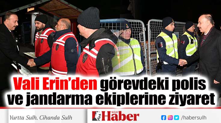 Vali Erin açıklamasında; ‘Vatandaşlarımızın güvenliği ve huzuru için mesai mefhumu gözetmeden canla başla çalışan kahraman polis ve jandarmamızı görevleri başında ziyaret ettik, çalışmalarında kolaylıklar diledik. Tüm polis ve jandarma kardeşlerime özverili çalışmalarından dolayı teşekkür eder, yeni yıllarını tebrik ederim’ dedi.
