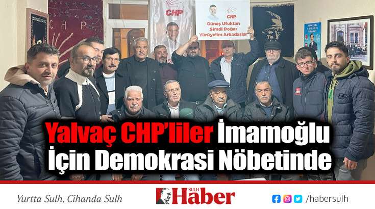Yalvaç’ta da bir grup partili ilçe yönetimi ile birlikte parti binasında nöbet tutuyor. Nöbetle ilgili “İmamoğlu için demokrasi nöbetindeyiz. 23 Mart Pazar günü partili, partisiz tüm vatandaşlarımızı demokrasiye sahip çıkmak için sandıkta oy kullanmaya davet ediyoruz.” paylaşımında bulunularak pazar günü partili partisiz tüm Yalvaç halkı CHP Yalvaç İlçe binasına davet edildi.