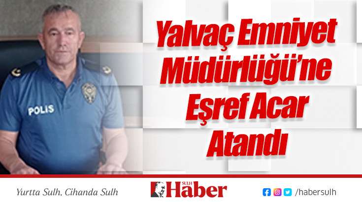 Geçtiğimiz Temmuz ayı sonunda başka yere atanan Ali Özher’den boşalan Yalvaç İlçe Emniyet Müdürlüğü görevine yeni atama yapıldı. Yalvaç İlçe Emniyet Müdürlüğüne atanan 4. Sınıf Emniyet Müdürü Eşref Acar’ın bugün ilçeye gelerek görevine başladığı bildirildi.