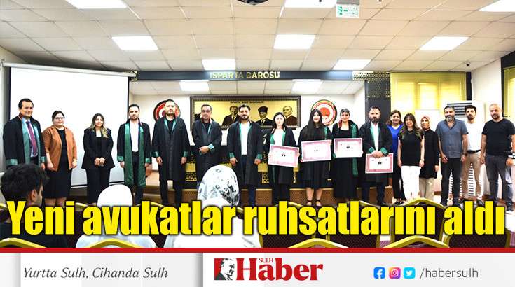 Isparta Barosunda düzenlenen ruhsat törenine Baro Başkanı Av. Ünsal Çankaya, Baro Başkan Yardımcısı Av. Fatih Semiz, Baro Genel Sekreteri Av. Ali Burak Yıldız, Baro Yönetim Kurulu Üyeleri Av. Halil Yavuz Kelle, Av. İsmail Tunçbilek, Baro üyeleri ve aileleri katıldı. Baro Başkanı Av. Ünsal Çankaya, “Yemin edip avukatlık ruhsatnamesini alarak mesleğe yeni adım atan meslektaşlarımıza başarılı, uzun ve kazançlı bir meslek hayatı diliyor, tebrik ediyoruz” dedi. (HABER MERKEZİ)