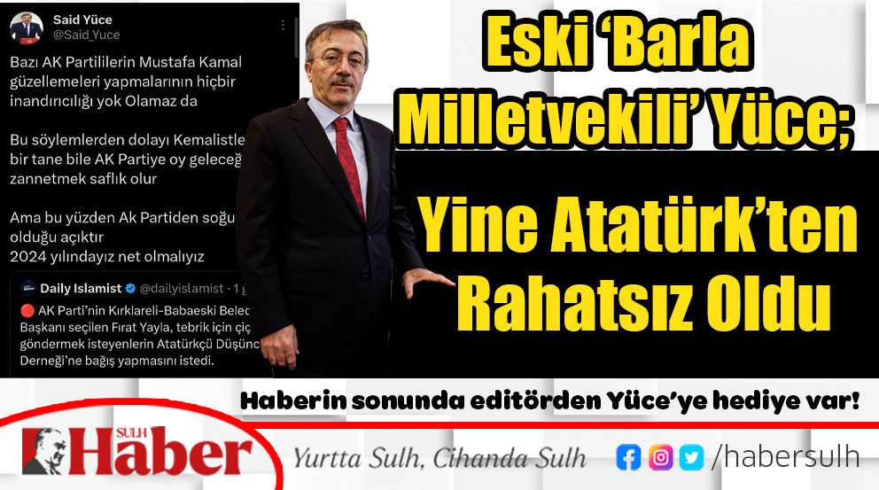 Hedef tahtasına sürekli olarak Cumhuriyetimizin kurucusu Büyük Önder Mustafa Kemal Atatürk’ü koyan Sait Yüce, son paylaşımda kendisinin de mensubu olduğu AK Parti’li Kırklareli-Babaeski Belediye Başkanı Fırat Yayla üzerinden yine Atatürk’ü hedef aldı.