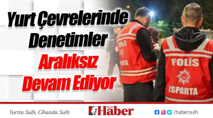 Isparta İl Emniyet Müdürlüğü ekipleri tarafından öğrenci yurtları ve çevresinde denetimler aralıksız olarak devam ediyor. Isparta İl Emniyet Müdürlüğü tarafından öğrencilerin huzur ve güven ortamının devamlılığının sağlanması ve olası riskleri en aza indirmek amacıyla; öğrenci yurtları ve çevresinde denetimler hız kesmeden sürdürülüyor. Bu kapsamda 119 devriye ekibi, 10-14 Ekim tarihleri arasında 2 Bin 783 şahıs ve 544 araç sorguladı.