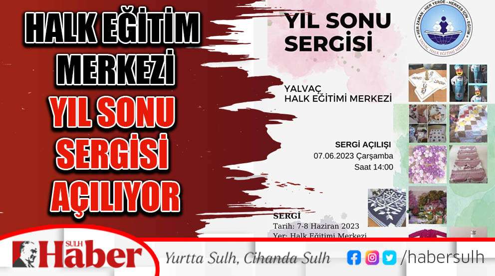 Yalvaç Halk Eğitim Merkezi bünyesinde ilçe genelinde yürütülen eğitim çalışmalarında üretilen ürünlerin sergileneceği geleneksel Yıl Sonu Sergisi’nin 7 Haziran Çarşamba günü açılacağı duyuruldu.