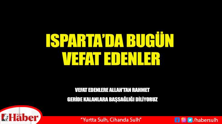 Isparta'da ve ilçelerinde bugün vefat edenleri ve cenaze namazı vakitleri aşağıda tek tek listelenmiştir.