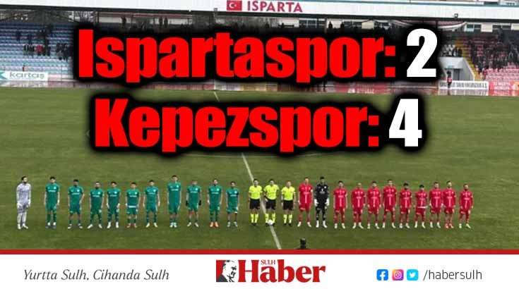 Karşılaşmanın başlangıcıyla birlikte Kepezspor baskısını hissettirdi ve henüz 2. dakikada Cerem Talha öne geçerek deplasman ekibini 1-0 öne geçirdi. Bu golün şokunu atlatamayan Isparta 32 Spor, 6. dakikada Sefa Yılmaz'ın golüyle farkı ikiye çıkarmasına engel olamadı. Kepezspor'un baskısı devam etti ve 13. dakikada Murat Yılmaz skoru 3-0 yaparak ev sahibi ekibin umutlarını erkenden tüketti. İkinci yarıya hızlı başlayan ekibimiz 46. Dakikada Vedat Bora ile farkı 2’ye düşürdü: 1-3. Dakiklar 70’i gösterdiğinde Haşim ile Isparta 32 Spor farkı 1’e düşürdü: 2-3. Kepezspor oyuncusu Cerem, 83. Dakikada skoru 4-2’ye taşıdı. Maçta başka gol sesi çıkmayınca ekibimiz kendi saha ve seyircisi önünde Kepezspor’a 4-2 yenildi.