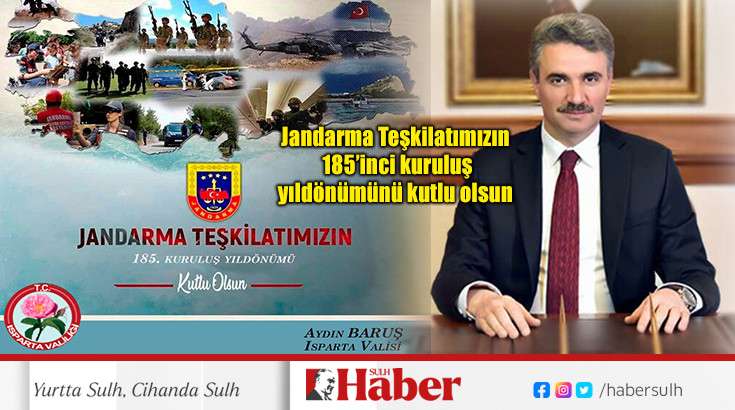 Isparta Valisi Aydın BARUŞ’un Jandarma Teşkilatının 185. Kuruluş Yıldönümü Kutlama Mesajı şöyle