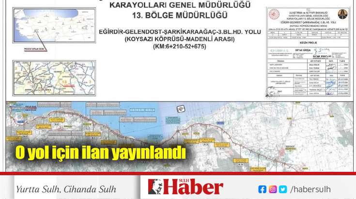 Eğirdir-Gelendost-Yalvaç yol ayrımı duble yol yapımı ihale ilanı yayımlandı.