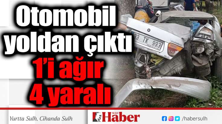 Otomobil yoldan çıktı 1’i ağır 4 yaralı