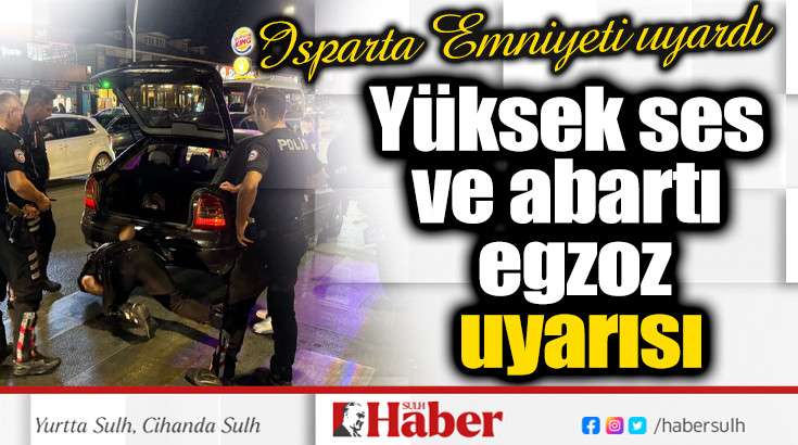 Müdürlük tarafından yapılan basın açıklamasında; “Isparta Emniyet Müdürlüğümüzce, vatandaşlarımızın huzur ve güven içinde yaşamaları ve seyahat edebilmeleri adına trafik denetimleri, yasal sınırlar içerisindeki görev, yetki ve sorumluluklarımız çerçevesinde kararlılıkla sürdürülmektedir. Çevreyi rahatsız eden abartı egzoz ve yüksek sesle müzik yapanlarla ilgili, tüm birimlerimiz bu konuya öncelik verecek şekilde çalışmalarını yoğunlaştıracaktır. Bu kapsamda; Karayolları Trafik Kanunu’nun 32/3. Maddesi ve 72. Maddelerini ihlal eden araçlara idari para cezası uygulanacak. Yasal düzenlemelere aykırı araçlar, uygun hale getirilene kadar trafikten men edilecektir.  Trafik güvenliğini sağlamak ve tüm vatandaşlarımız için daha yaşanabilir bir şehir oluşturmak amacıyla, denetimlerimiz artarak devam edecektir” ifadelerine yer verildi.